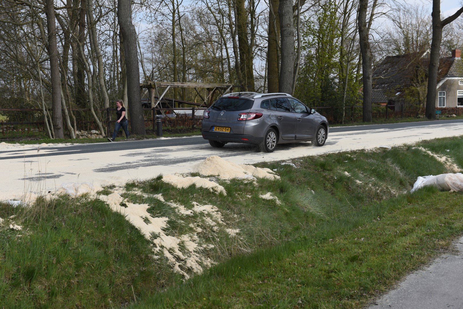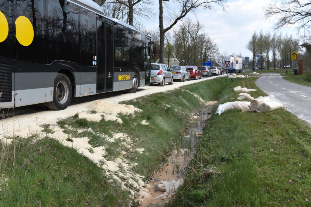 N372 tussen Leek en Roden bezaaid met zaagsel nadat